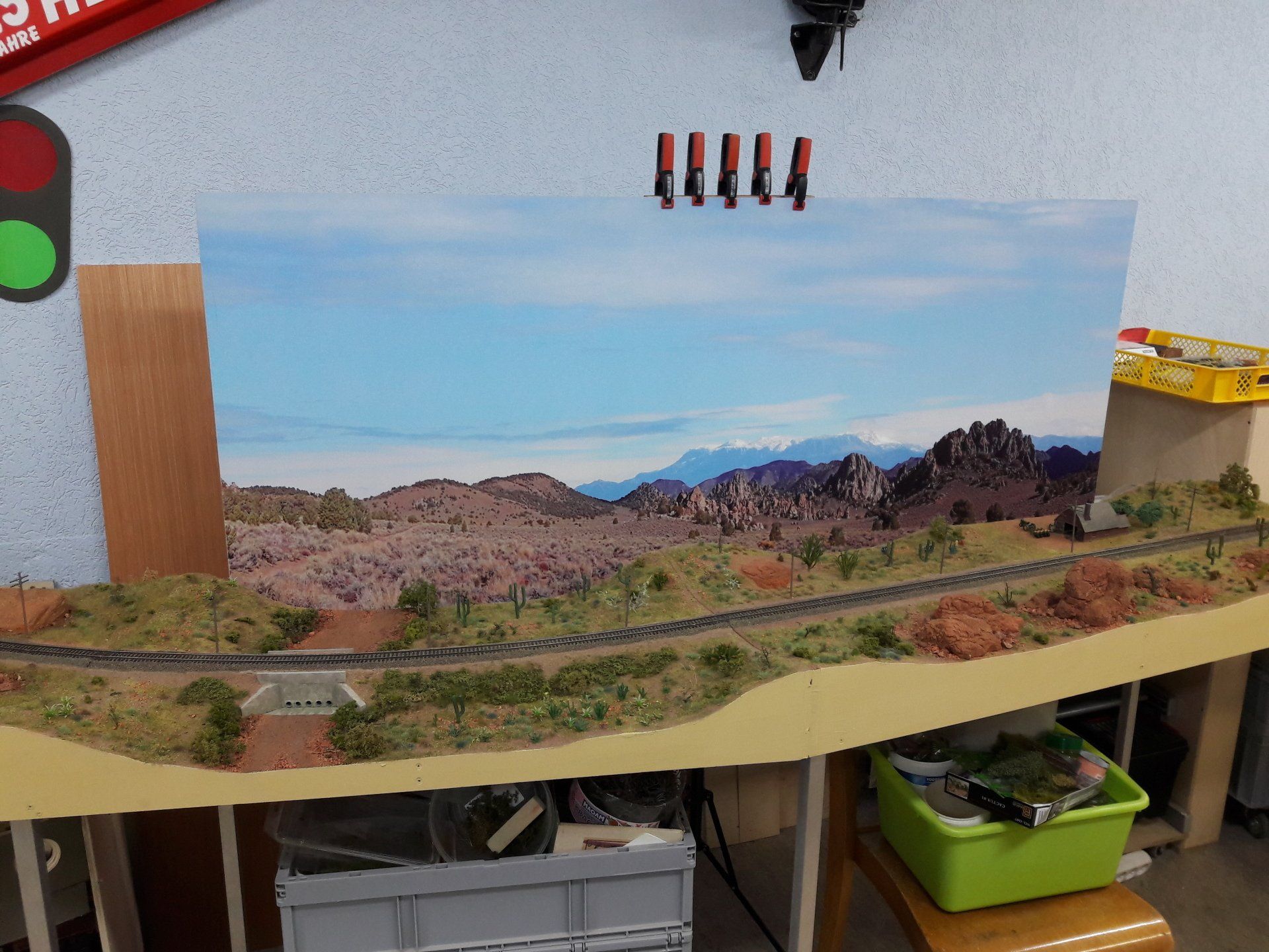 Im Frühjahr 2019 ging es dann in die Planung für die US-Convention. Auch hier merkten wir "Mann, da fehlt uns noch was". Hier war es ebenfalls eine 90° Kurve, diesmal aber 2 gleisig. Um diese später bei US-Fahren vielseitig einsetzten zu können, haben wir noch einen Abzweig eingebaut, um ein weiteres Modul mit NAI-Norm anschließen zu können. Kurz vor der US-Convention wurde die Kurve dann fertig, das Thema für die Gestaltung hat sich hierfür sehr spontan an den vers. US-Treffen ergeben.