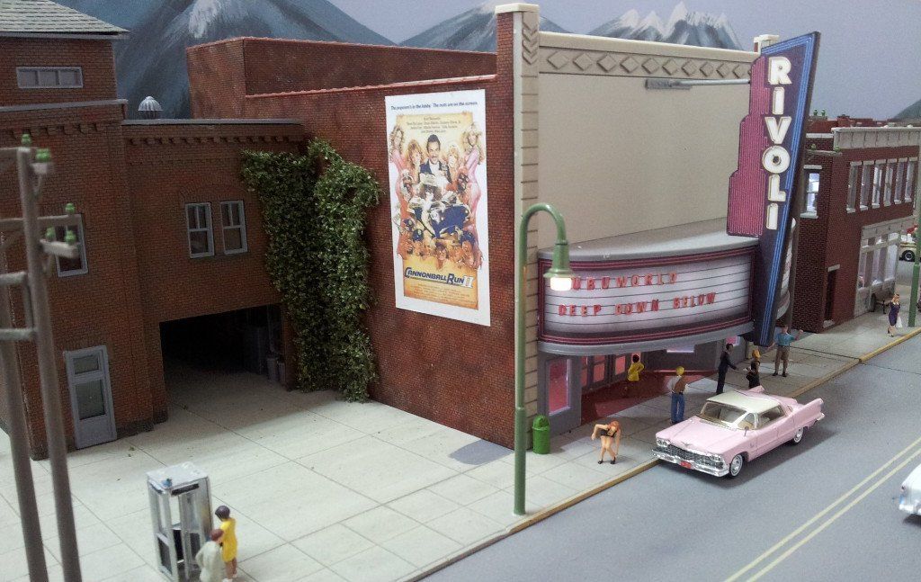 Modul Nummer 4 schließt die Kleinstadt mit einem Kino sowie einem Bahnhof an der Strecke, die seit Modul Nummer 2 ein zweites Gleis erhalten hat, ab. Manche Kinofilme waren schon Jahre vor ihrer Veröffentlichung der Renner.